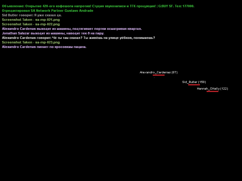 Суть жалобы: подошел в лас колинас поиграть к одноклассникам. не прошло и тридцати секунд, как проезжают мимо два каких то чувака и начинают поливать нас с тека. к ситуации, которая спровоцировала этот шот я отношения никакого не имею. когда началась пальба, я вытащил обрез, чтоб не слечь,(перс нестандарт) но не вышло. и это крайм игра? чуваки буквально школьников расстреляли по приколу. если бы нестандарты так же делали, мы бы всех их в архив уже давно откинули. почистите пожалуйста сервер от шутерков