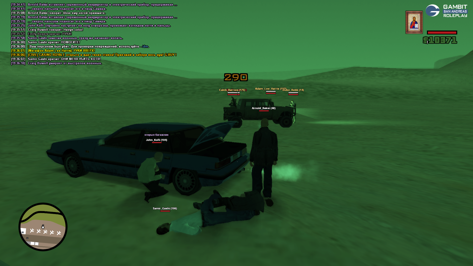 был расстрелян за то что, ничего не делал. открывал багажник мой соигрок. мне не понятно, почему НГ сразу открыли огонь, как только системно был открыл багажник, ибо опираясь на игровую условность гамбита, что когда человек просто хочет открыть инвентарь рядом с тачкой, то сразу открывается багажник.