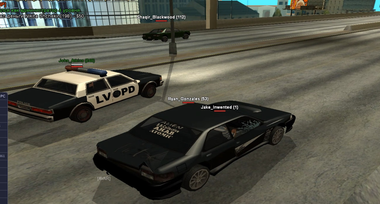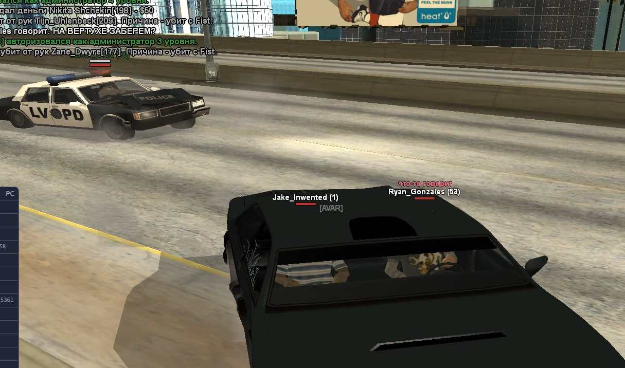 та ситуация в погоне я к ней относился, ехал чтоб спасти другана, ты сказал уехать, я чуть проехал за ним, и когда в меня стукнулся коп я понял что лучше не меншать, откатил, коп уехал, и я зашел в модульник, сел на вертолет чтоб покататься ( он стоял на вертолетной плошадке бетонного притона ) Взлетаю, и прилетает бан