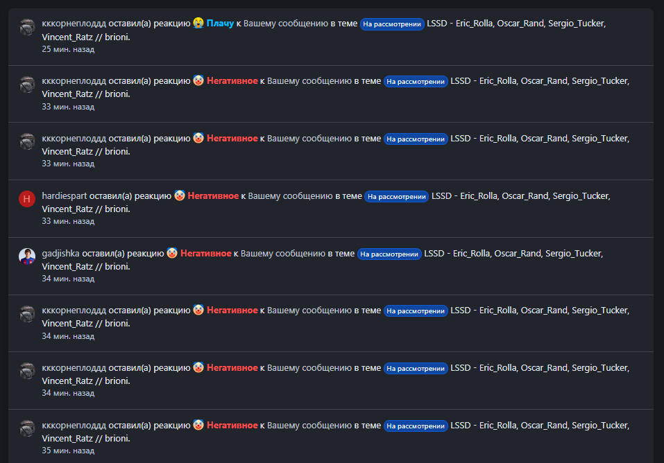 Никнейм нарушителя (если несколько, то через запятую): Eric_Rolla, Oscar_Rand, Sergio_Tucker, Vincent_Ratz