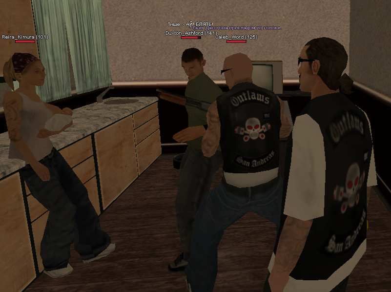 Поехали с корешем к домой к Дакстону выбить из него бабло, это было ограбление но мы называли его должником дабы всё было формально. Залетаем, видим его с какой-то бабой, у меня с другом стоит заменка девушки с младенцем, решили что это добавит больше веса и драмы для ситуации.