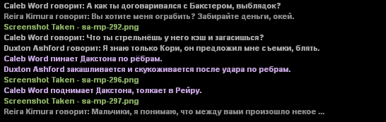 Долги, естественно, мой персонаж ни у кого не брал. Знакомство с Corey_Stallman и Caleb_Word произошло за 10 минут до убийства.