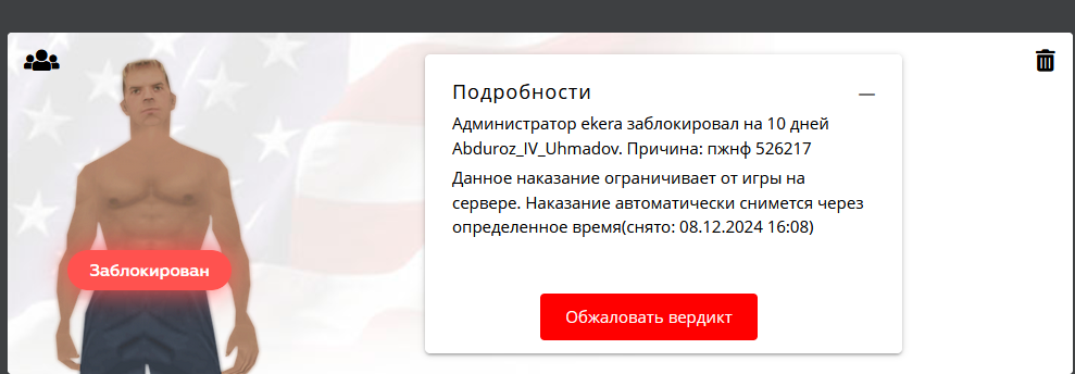 Дата и время наказания/нарушения: 28 Ноя 2024