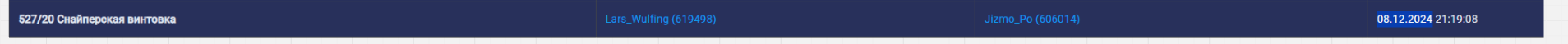 1733926582317.pngпредъяви мне скриншоты вашей передачи и айси игры, ты передал jizmo po оружие, все это происходило 8.12, в 21.19 по времени