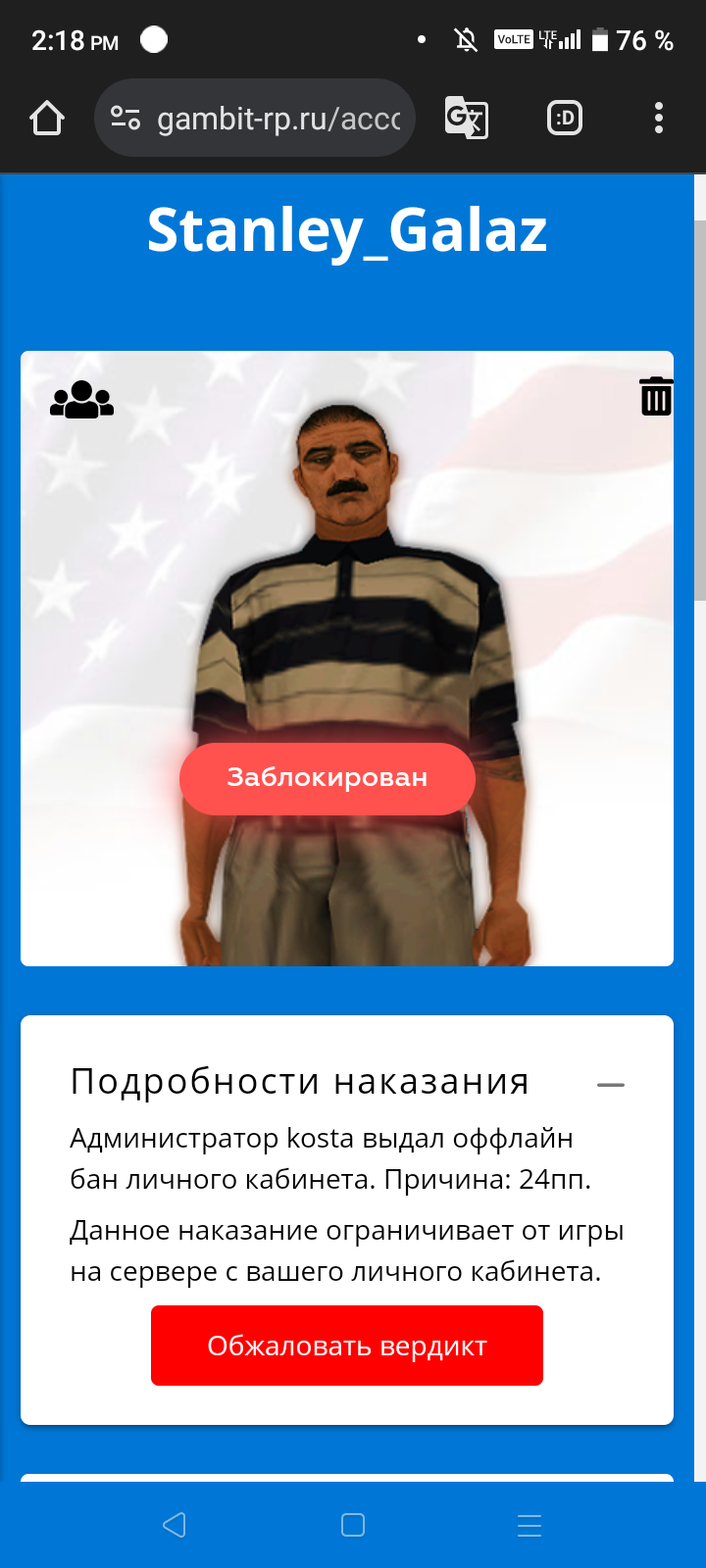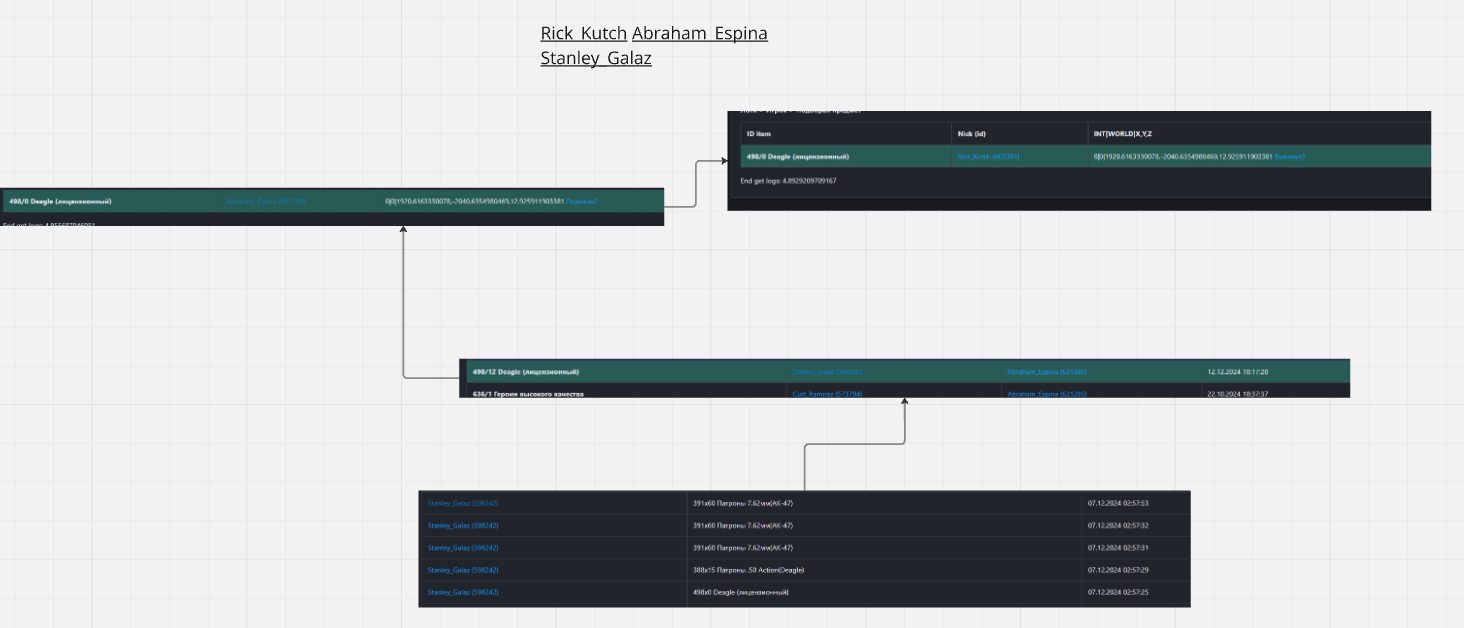 Забанили за махинации, днями ранее отдал участнику фракции дигл, как выяснилось лицензионный, я хотел отдать ему другой, но видимо перепутал. Он скинул этот дигл т к увидел что он на серийнике(удалить системно оружие нельзя) и какой то чувак с ником Рик Кутч видимо его подбирает. Насколько понимаю у тебя была версия что Рик Кутч это мой перс, но это не так