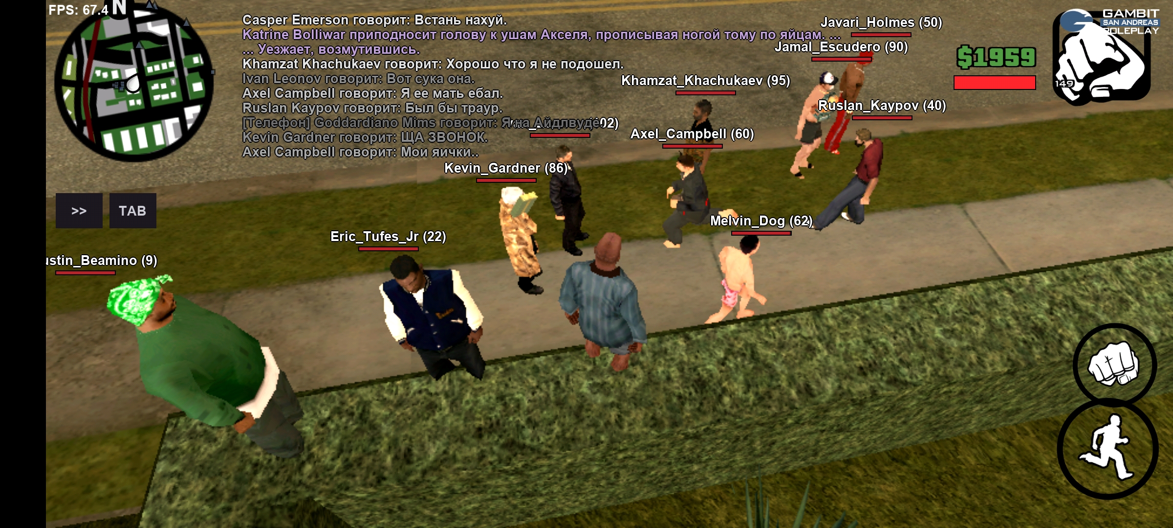 Суть жалобы: Даже не знаю как начать, вернувшись со службы решил поиграть с телефона, так как комплектующие пк приедут только через неделю. Где-то полтора года назад перед моим уходом здесь играла фракция BANTON, сейчас же я зашёл и мягко говоря "упал". Почему таких низкосортных игроков держут на сервере? Какой вообще смысл их игры? Я понаблюдал их игру в течении двух часов — она замкнутая, словно полицейский пончик. Выехали с Айдлвуда — приехали на Гэнтон — пострадали хуйнёй — пострелялись — уехали. К сожалению не имею возможности фрапсить, предоставлю всё что есть. Во время своей игры они выписывали в чат "штат гамбит, носит бензопилу в трусах". Какой вообще здравый игрок так будет писать? А если на моём месте будет новичок, что он должен подумать? Я сам не гуру ролевой игры, но вернувшись на сервер понял, что вот из-за таких "клоунов" которые имеют лишь один маршрут Айдлвуд-Гэнтон люди не хотят играть здесь. А ведь раньше тут между прочим была официальная фракция, в которой я тоже не брезговал играть. Позже одному из них ударили по яйцам, а что он отыграл? — "Я её мать ебал, мои яички". Мог бы хоть минимальные отыгровки выкинуть, ведь удар по яйцам это не пощёчина, а довольно таки болезненная хуйня. А ему было плевать , он зашёл посмеяться и подраться. Пошастав по форуму я посмотрел, что эти игроки уже ни раз просили амнистию так зачем вообще им давать шанс, если эти люди не играют во фракциях, а лишь имеют цель пострадать хуйнёй и постреляться?