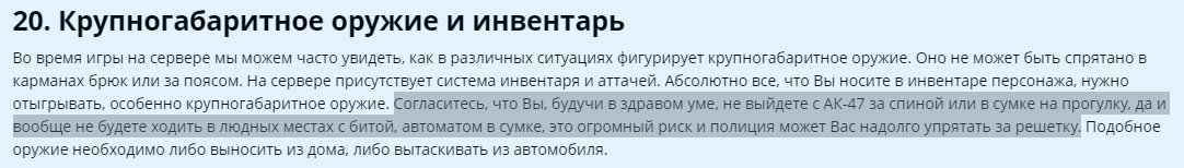 Почему за 20пп тебе выдали бан, а не пошли на уступки. Ты стоишь в оживленном месте с дробовиком на аттаче. Тебе кидают предупреждение, мол, уберите оружие, зачем святить им просто так, в ответ слышат отказ. Почему так нельзя ходить, стоять, лежать и так далее? Потому-что смысл святить своим оружием? В правилах четко написано и указано, 1734811776778.png
