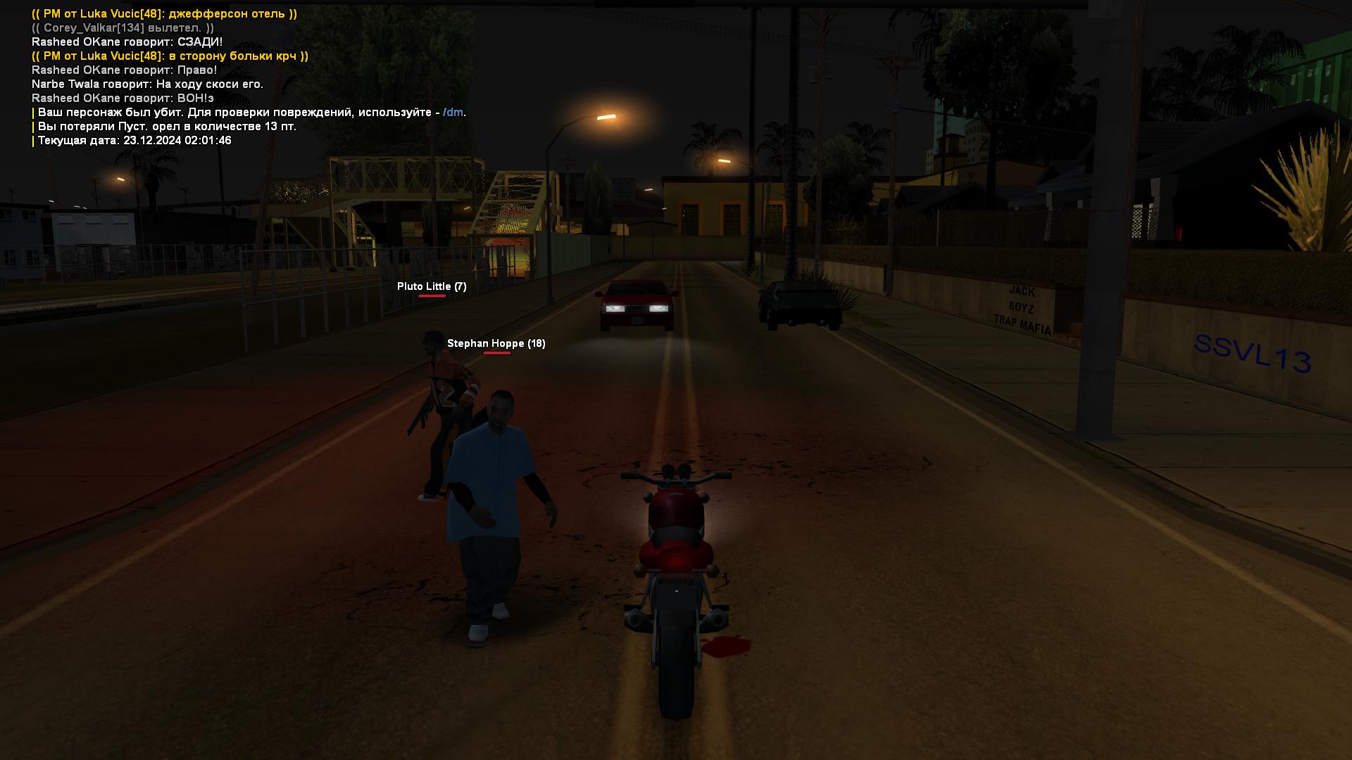 Мы нашли его и подъехали, но как увидели что он не один сразу дали газу за угол, он не погнался ничего, смотрим и через минуты две едут наши двое поставщиков на байке, их сразу скурили и вы уехали, нашли одного лишь Плуто, убили на заправке как свидетеля.