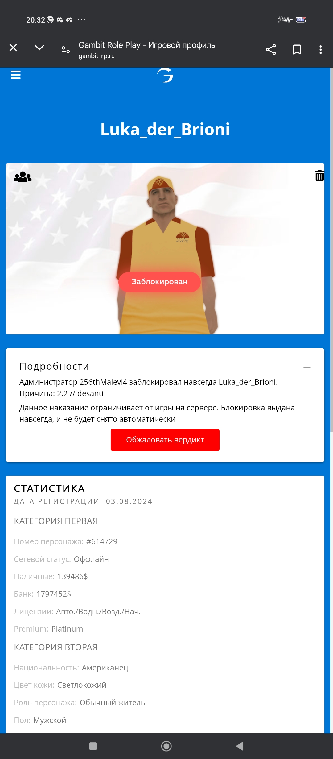 И тут мне прилетает бан по причине 2.2, за что? Какое несоответствие роли?