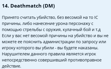 а тогда что мне надо было выдать? расскажи я послушаю, в 16.1 не сказано про бронежилет но все равно наказывают за ношение его без аттача и без причины, а то что ты начинаешь бить чувака без отыгровок, заранее убрав что то в багажник это выглядит странно. Если ты не согласен с 14пп тогда скажи какое я должен был выдать?