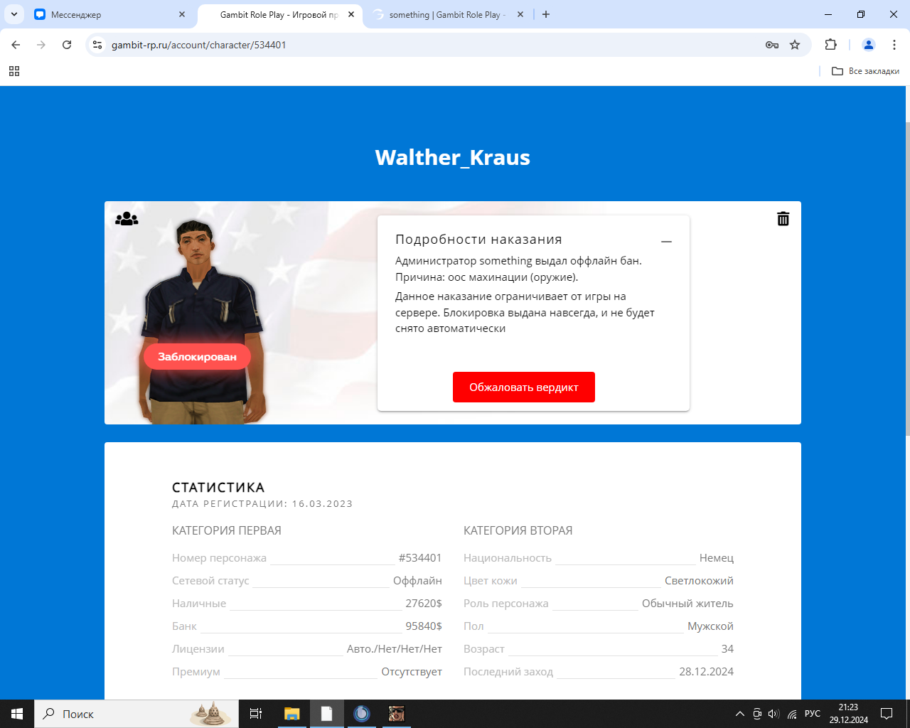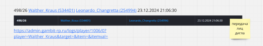 в том, что это нарушение сервера. амнистирую тебя ибо у тебя и оружия никакого нет на аккаунте. пометку оставляю на лк. в следующий раз внимательнее относись к таким вещам.Увы не посмотрел, но вы типо реально считаете что нам делать нечего подстраивать такую ситу ради того чтобы перекинуть оружие? насколько мне известно этот ган уже обнулили у детектива. Тогда в чем сложность мне снять бан? Ситуацию я разъяснил уже