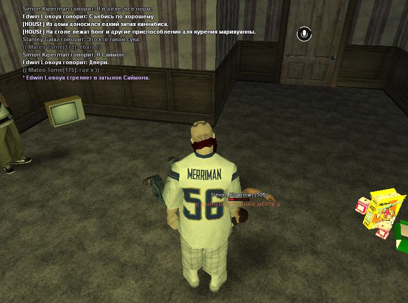 Суть жалобы: Мой персонаж ходил за какими то парнями, так как бы в состоянии алкогольного опьянения, я это отыграл и дал понять в самом начале, по случайности зашел с ними в какую то квартиру. И тут юный стрелок на эдвине без какой либо отыгровки и причины шотает меня. Причины неизвестны, мотивы тоже.