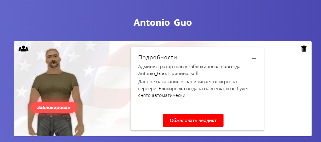 Ссылка на доказательства наказания/нарушения: