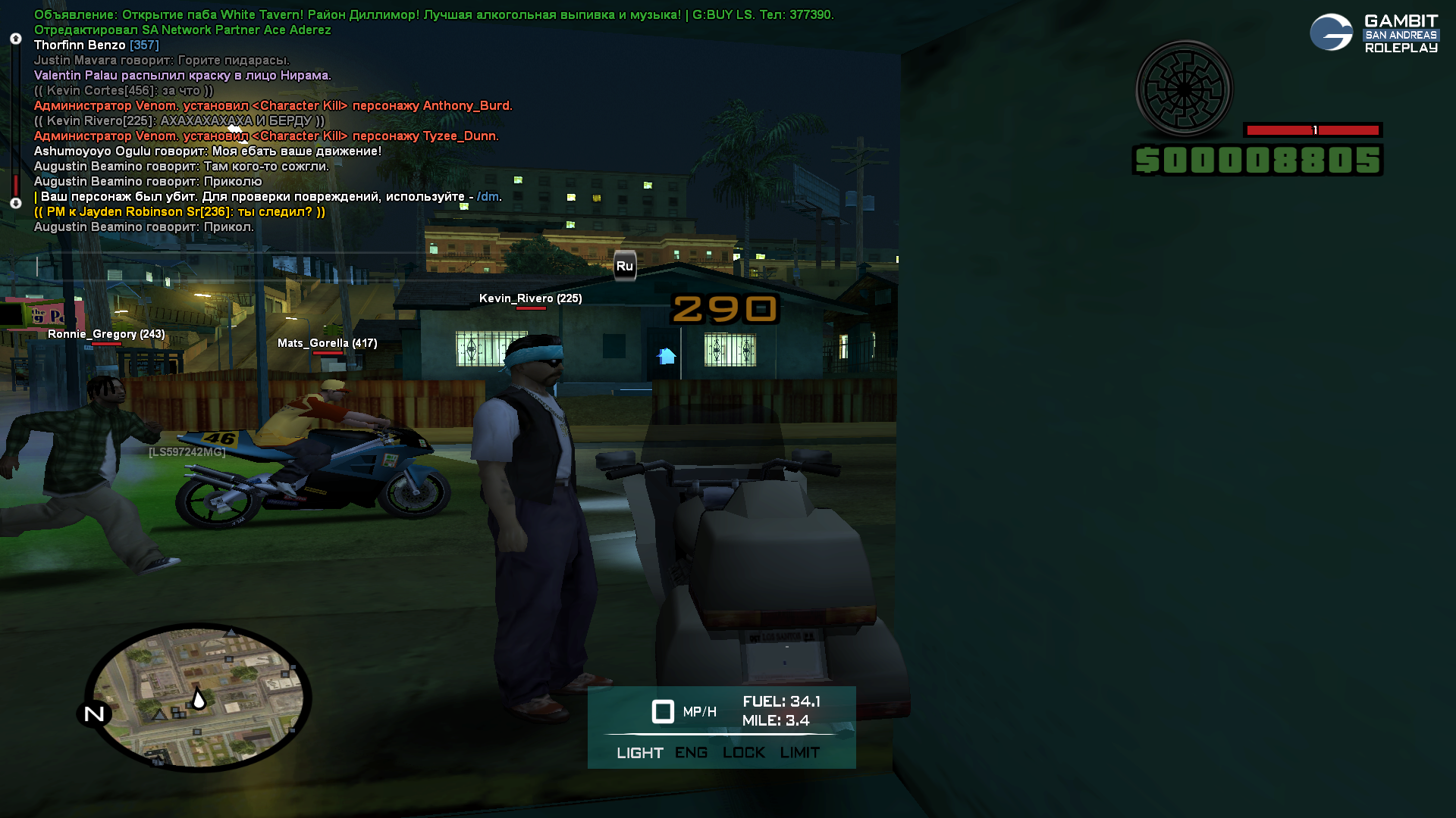 Суть жалобы: Играл с кентом, заехали посмотреть как дела у мексиканцев. Так как мой персонаж коренной сентинелец - глупенький африканец простым словом. В общем, подъезжаем мы к рандомным испанцам и я говорю - я ебал ваше движение. Мы хотели завести ситуацию т.к в это время сервер пустует, все люди в основном собираются в Сан-Фиерро где нам не интересно. Не суть. Так вот, я произнёс роковую фразу и Кевин Риверо и его друзья подумали что это непростительно, и вместо того чтобы завести ситуацию - нас шотают без отыгровок. И правильно, а нахуя они нужны?