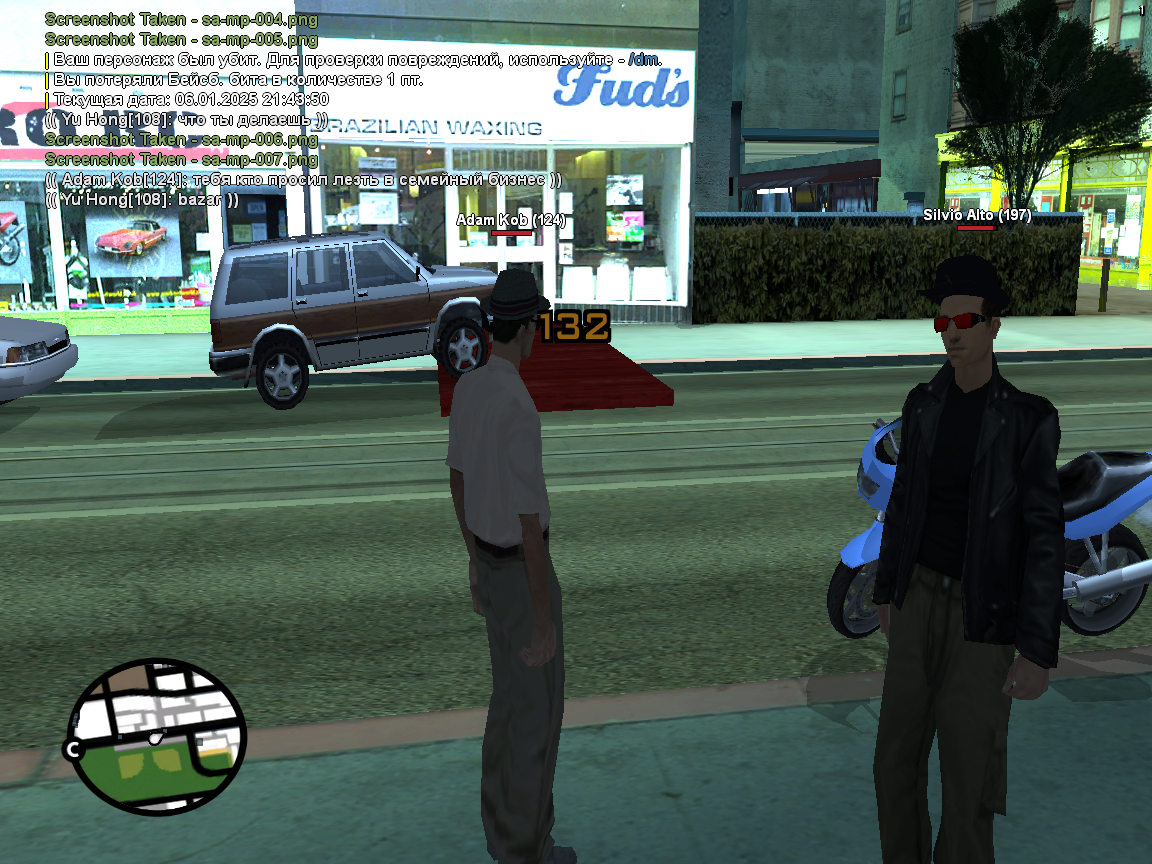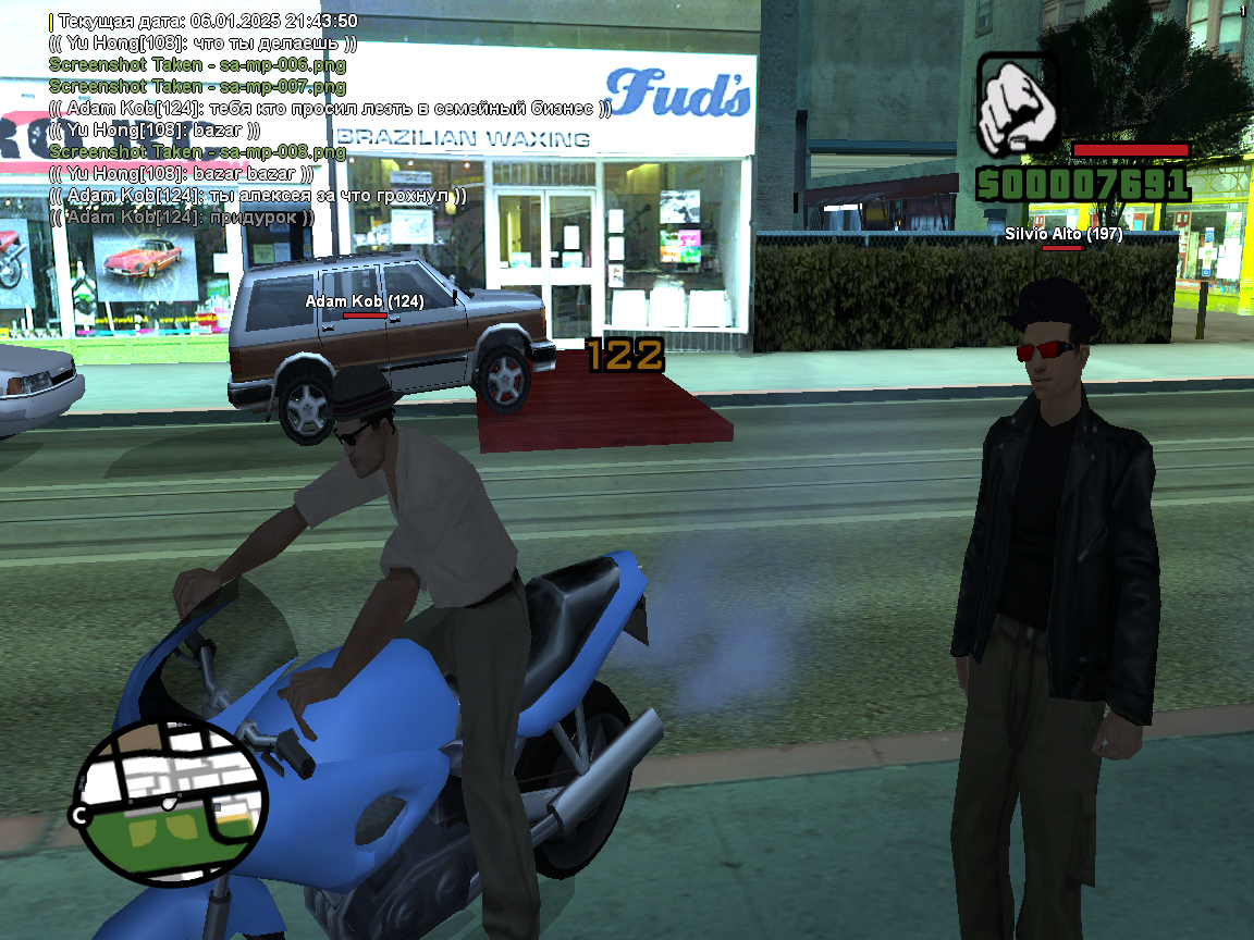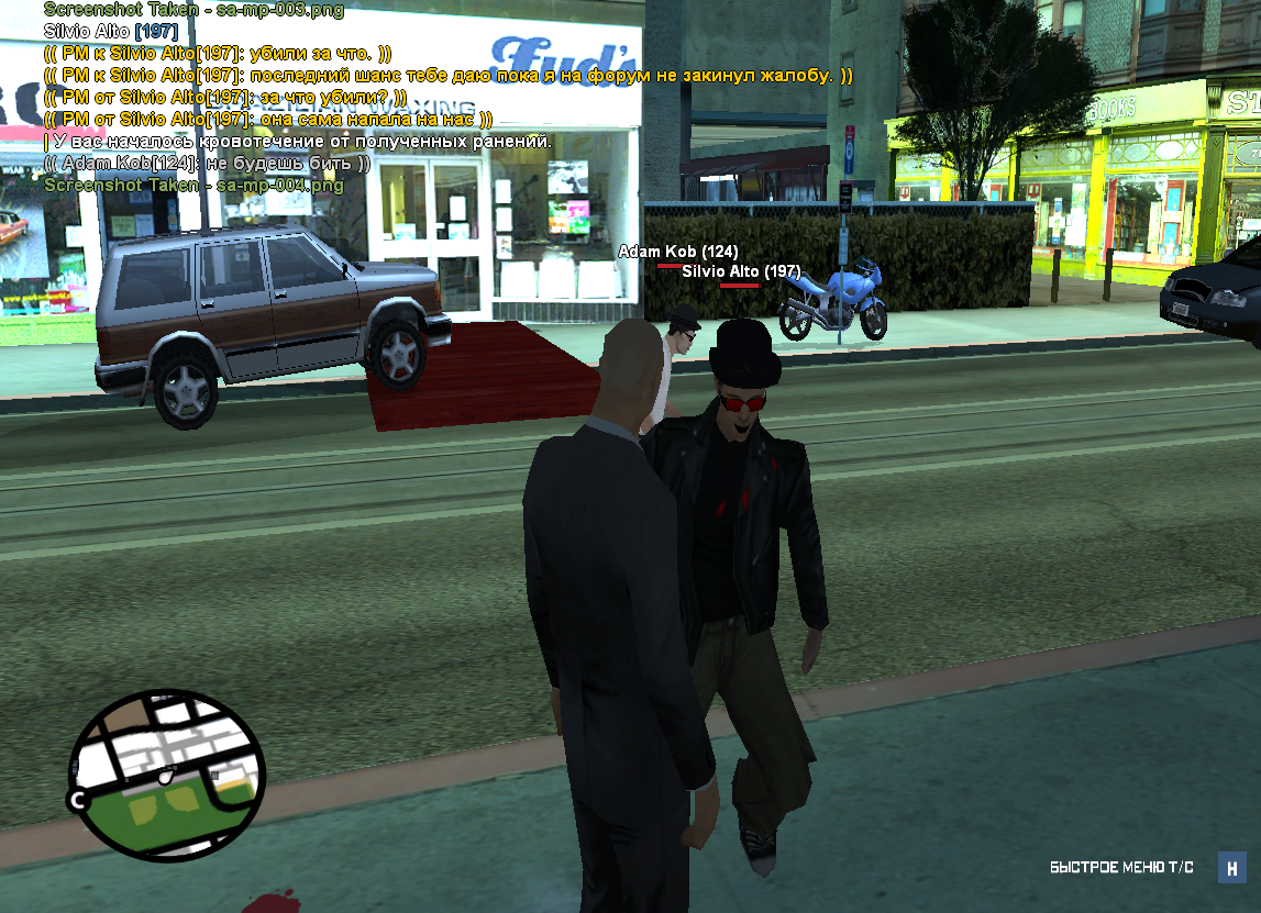 Суть жалобы: В общем ситуация простая. Заказали проститутку; я как персонаж сутенёр её им привёз. Во время полового акта не с того, не с сего персонаж Silvio Alto по какой-то непонятной причине рубит её катаной, укатывает. Позже я выхожу из афк и меня аналогично рубят катаной с бензопилой без каких-либо отыгровок и мотивов. Игроки некачественные, очевидно фангеймеры; это видно и по их беспричинным убийствам, и по набору аксессуаров, и по сообщениям в OOC чат.