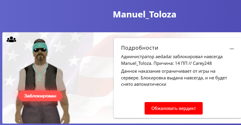 Что прости? Ты вообще в адеквате? Какой откат и доказательства в твоем телеграмм канале.. почему ты принимаешь откаты от игроков не написавших жалобу, чую откиданную во вконтакте, не припоминаю когда разрешили банить по откату отлетевшему во ВКонтакте. Реабилитацию братиш извиняй я не буду проходить. Начнем с того что игрочишки катаются по всему ЛС и грабят кого попало чисто забивая в стадию кулаками. Дальше убийство с АКМа - с М4. Отняли у меня 100 долларов - 1150, впрочем вогнав в стадию.. как ты мне говоришь мне перевели деньги. Но в этом время у меня идет игра с полицейским (я лежу в стадии телефон не достается) несколько раз я очищаю чат и забиваю на то что мне какието 4к скинули, ведь я игрок криминального раздела.. и когда моего персонажу вот так по приколу вгоняют в стадию дабы ограбить? Нет извини... я понимаю что ВЕЛЕНО ТЕРПЕТЬ, но не думаю что активный участник банды стерпел бы такое нападение от трех рыл и ограбление на месте.