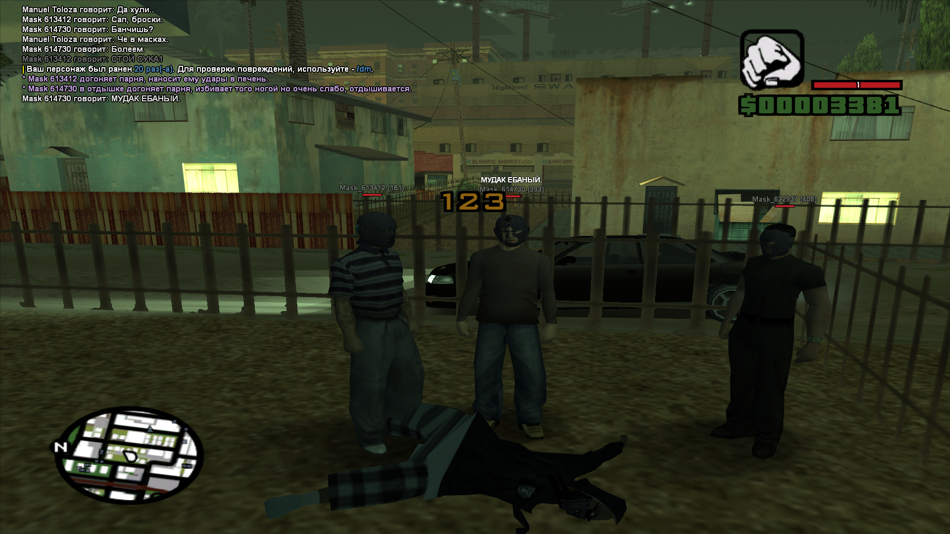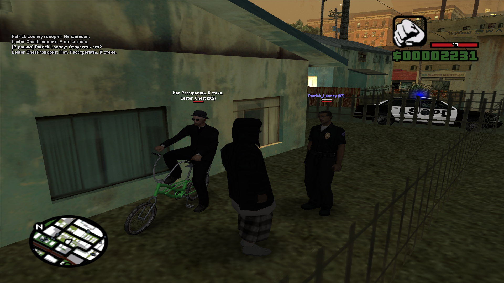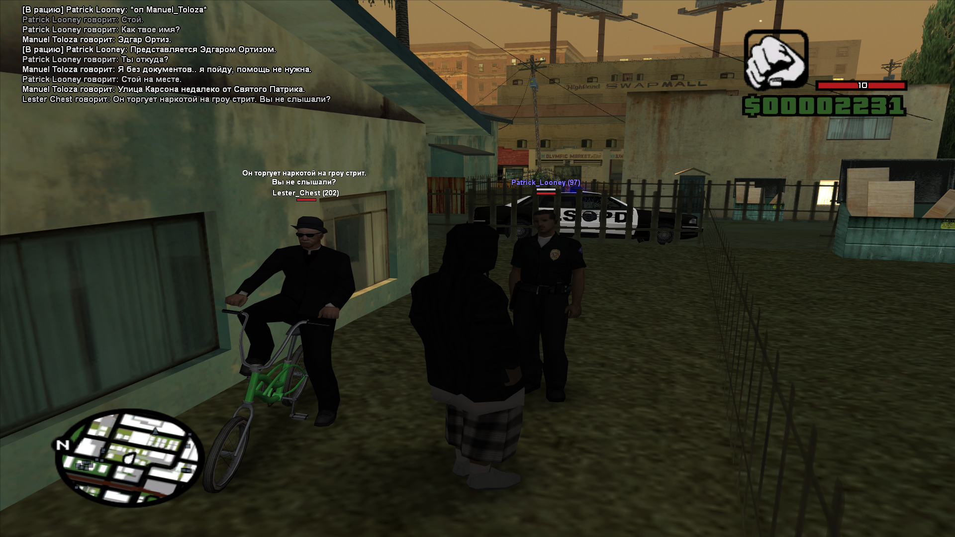 Начнем с того что игрочишки катаются по всему ЛС и грабят кого попало чисто забивая в стадию кулаками. Дальше убийство с АКМа - с М4. Отняли у меня 100 долларов - 1150, впрочем вогнав в стадию.. как ты мне говоришь мне перевели деньги.