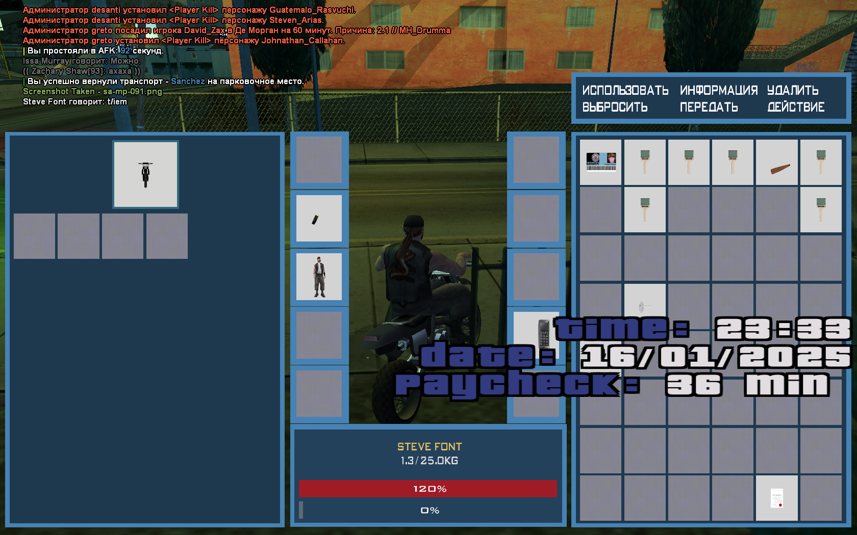 Меня больше смущает то, что Zerooha_Mays поднял оружие в 16.01.2025 22:45:54, когда ты выкинул ганчик то в 16.01.2025 22:44:22. Как-то максимально подозрительно получается, что потом решил пойти и дмить