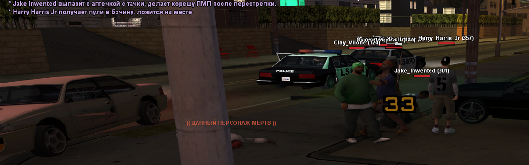 далее это подхватывают остальные и начинают тулить меня со всего что у них есть, Гэрри в этот момент уже упал в 1 стадию от ответного огня, мне так-же непонятно зачем игрок с ником Магомед находился в этот момент в бронежилете и есть ли у него разрешение на его ношение в гетто, не будучи игроком гос. фракции.