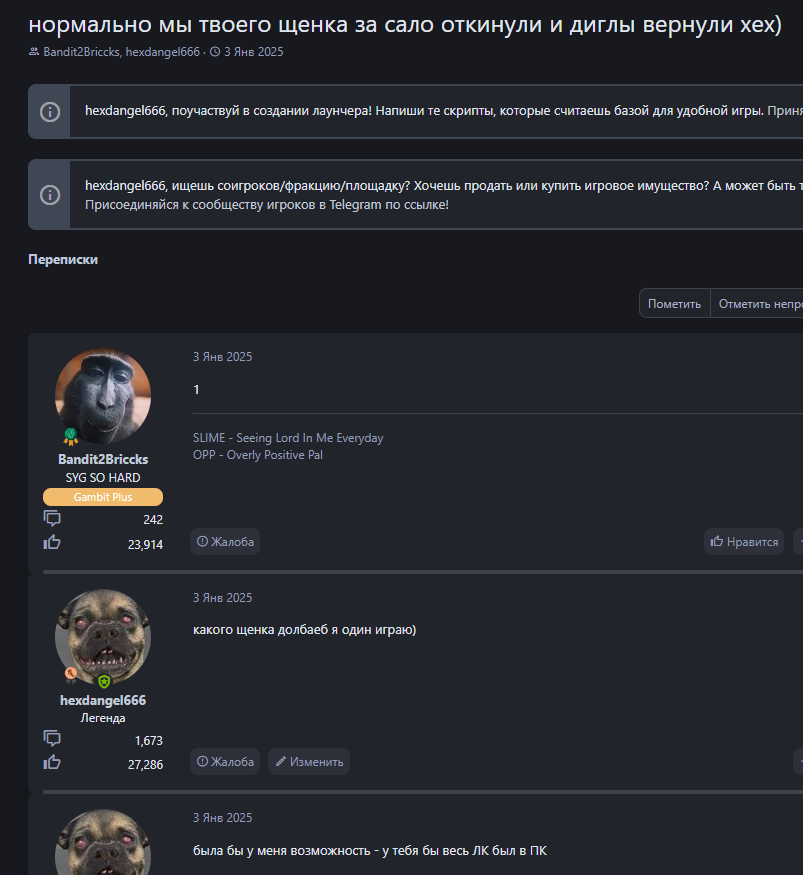 к слову у игрока с ником Бобби личные обиды, он уже ранее подбегал ко мне со своих твинков со словами " Здарова " и начинал стрелять без отыгровок, за что его аккаунт уже банили навсегда за dm по моей жалобе, его сегодняшнее " Здарова " было отсылкой к тому самому случаю, а ознакомиться с этим вы можете по этой ссылке - https://forum.gambit-rp.ru/threads/532815/