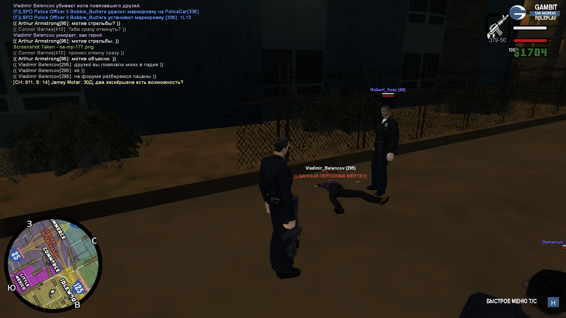 В этой ситуации я убил только копа, убил ли я топикстартера не помню, по логам гляньте