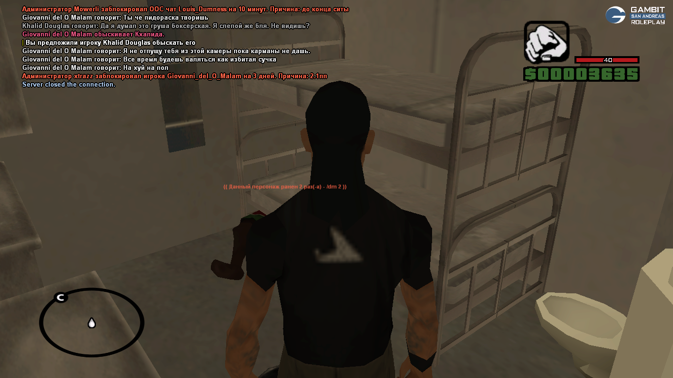 Суть жалобы: Khalid Douglas пока я стоял в афк без ескейпа подошел меня и системно бил по приколу и снес мне пол хп, из за этого я ронял каждый раз его в стадию. Доказать что он на рофляниче залетел ко мне и по кайфу меня дубасил я могу лишь скриншотом где Khalid написал про то что подумал что я боксерская груша, свое нарушение принимаю и хотел бы снижение срока + Khalid Douglas находился в блоке F там где он не должен быть изначально, так он крысанул админу что я каждый раз кладу его, пидорская натура