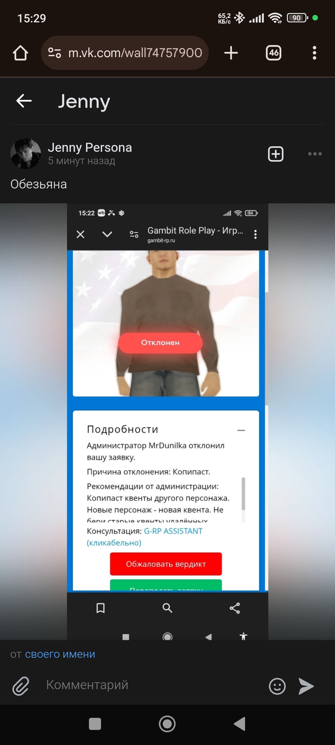 Суть жалобы: Отклонил заявку на создание акка из за квенты хотя я ее не копировал от другого перса