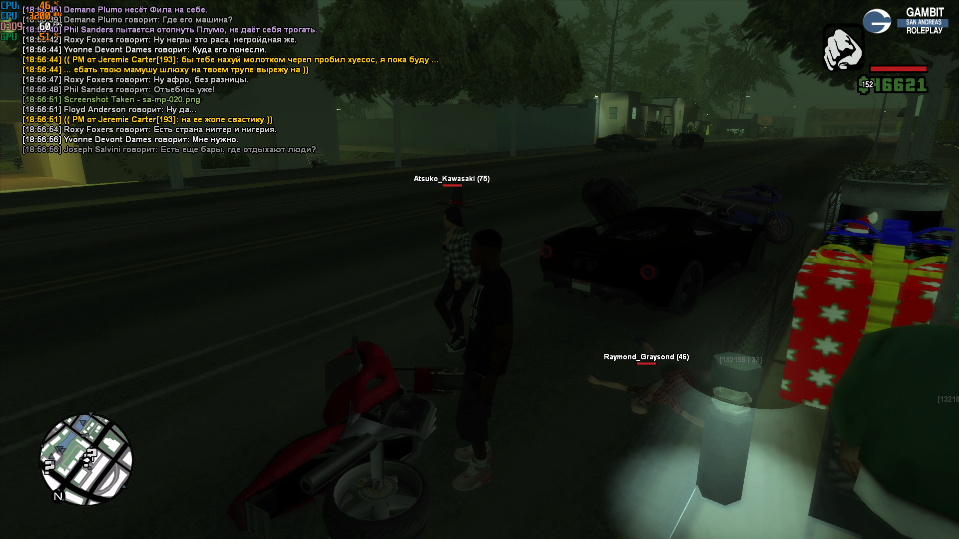 Суть жалобы: Ну ситуация такая. Стою на дороге, никого не трогаю, пишу пм кенту и сзади мой кар влетает этот тип. (на первом скрине видно что так и было), после чего у нас с ним завязалась словесная перепалка. Он уехал и казалось бы все норм, но под "конец" конфликта он вернулся на то же самое место и решил меня задмить "угрозу жизни" хотя по факту за оос обидки. Но как итог, я успел уехать, но он не успокоился и шотнул меня прямо у мэрии без маски и чего либо (на скрине видно) Imgur: The magic of the Internet
