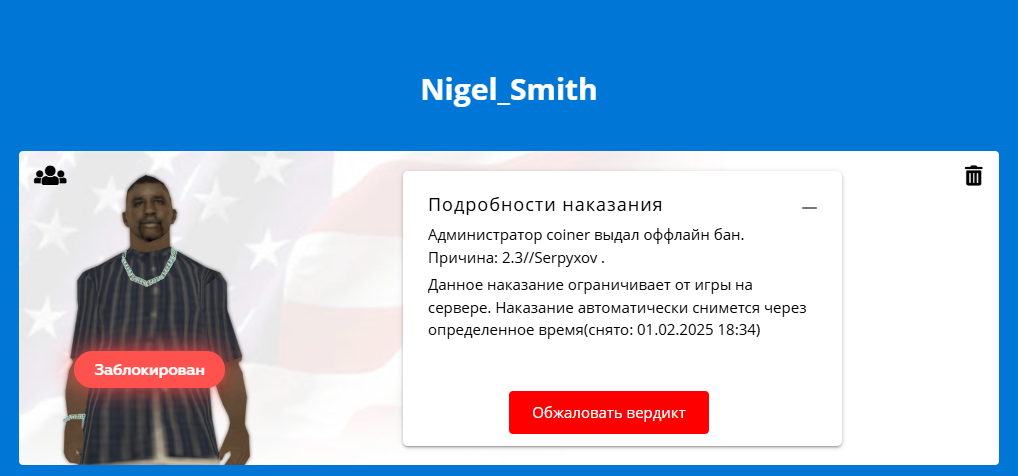 Суть жалобы: Блокировка была выдан нелегитимно. Причину в игре расписал, позже мне нужно было уезжать на тренировку, это я сообщил администратору. По возвращению домой вижу оффлайн бан.