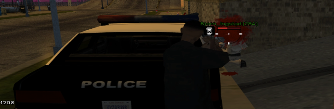 Ранее мы ограбили какого-то человека из бюро, который на самом деле оказался нубом и никаким не бюро и просто сдал нас полиции, полиция приезжает и когда мы пытаемся уйти от них давит меня с попыткой снять хп, это называется ДБ и уже нарушение правил, но я закрыл на это глаза.. копам же можно!