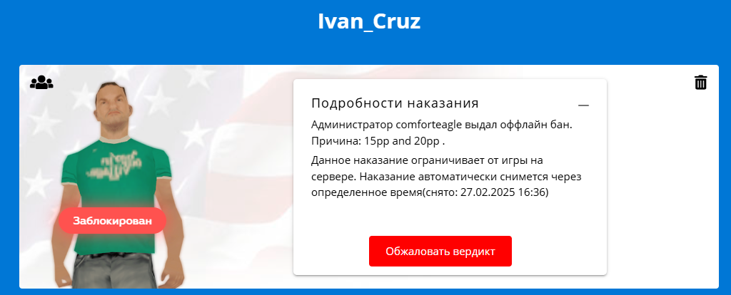 Суть жалобы: Обнаружил блокировку за 15пп и 20пп, за что?