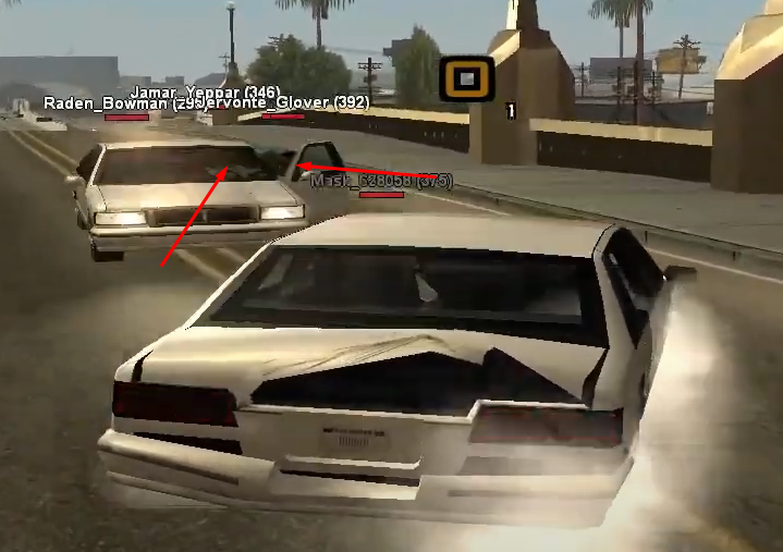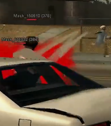 видим, что едут парни, огромная скорость, но у водителя хватило ума на огромной скорости врезаться в автомобиль, его соигроку выпрыгнуть в этот момент из автомобиля(при этом ещё и сбив анимацию, начать стрелять по ним)