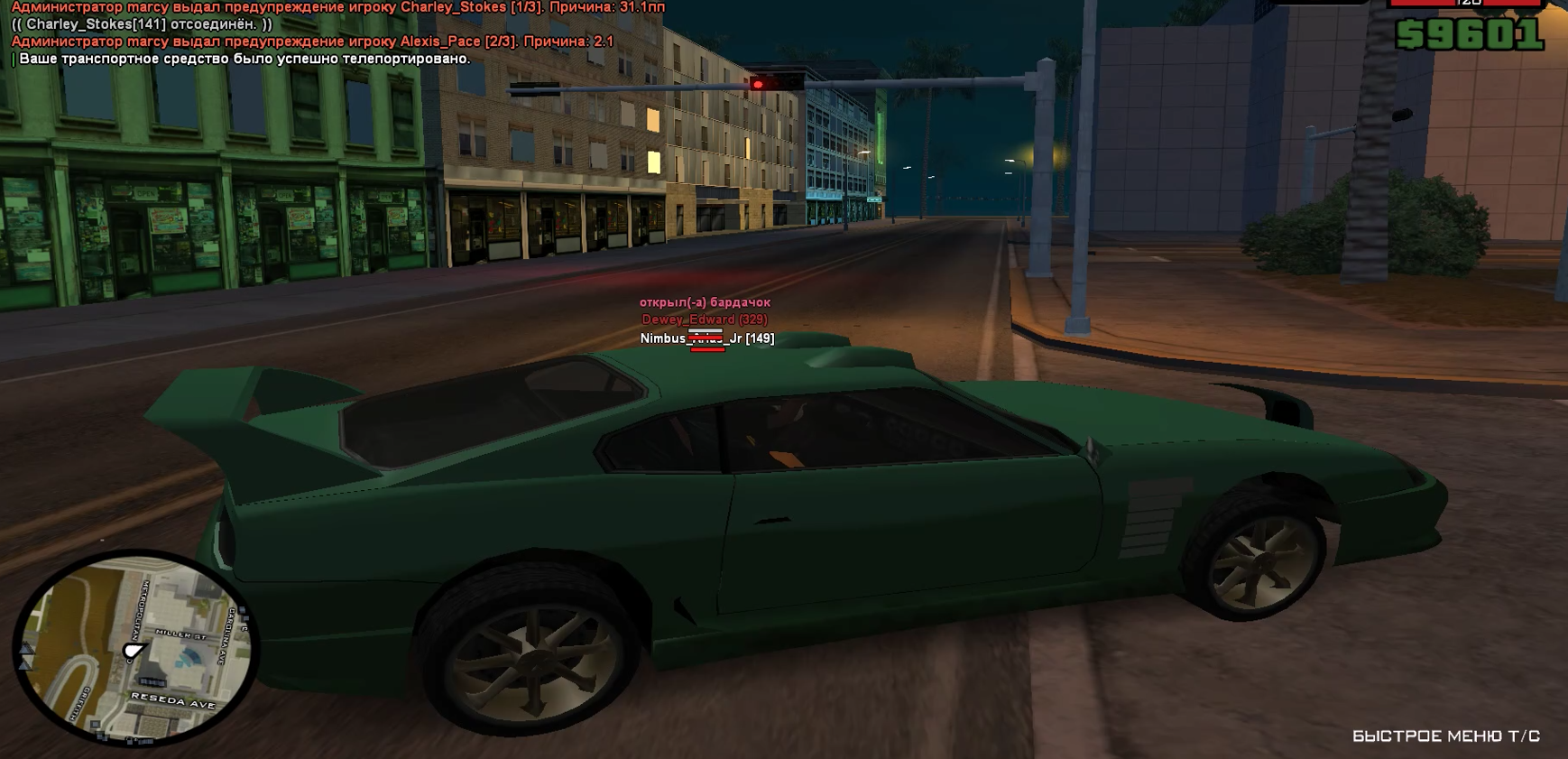Ситуация следующая - проводилось задержание подозреваемого от РХД Magomed Nurgabanov (чё-то вроде того), он находился вместе с ТС в одном автомобиле. В результате чего - тс сел в третью машину на гротти. Объехал мое перекрытие. Был со снайпой за спиной - передал информацию в ТАК, сам с детективкой Магомеда Зажимали. Магомеда задержали - досматривали авто. Я, обыскивая автомобиль сел в него. Меня телепортировало в конференс центр к ТС. Парень без всякой задней мысли и отыгровки меня тупо из тачки попробовал выкинуть, в итоге - результат ситы на лицо. Паралельно к этому, парень выпрыгнул из своего джестера и открыл по мне огонь со снайперки. Про то, что выдали варн ваще не в курсе. Запись, я полагаю есть у АСД и других участников погони. На данный момент не имею доступа к ПК, запрошу АСД и своих на эту ситуацию. Лутинг автомобиля не производился, игрался обыск авто, логи можете чекать. Ситуация качельная, но инфу по оружию за спиной ТС передал я в ТАКе, погоню проводил не я.