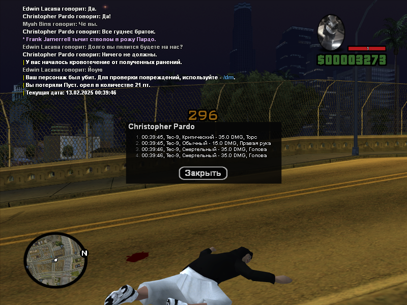 Суть жалобы: Убили за то что не отдал деньги и кажись у парня который убил меня был дм на голову ))