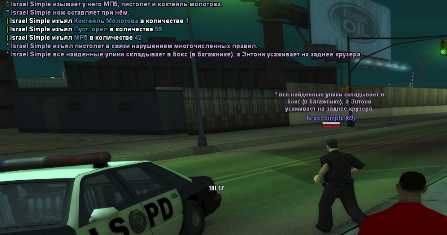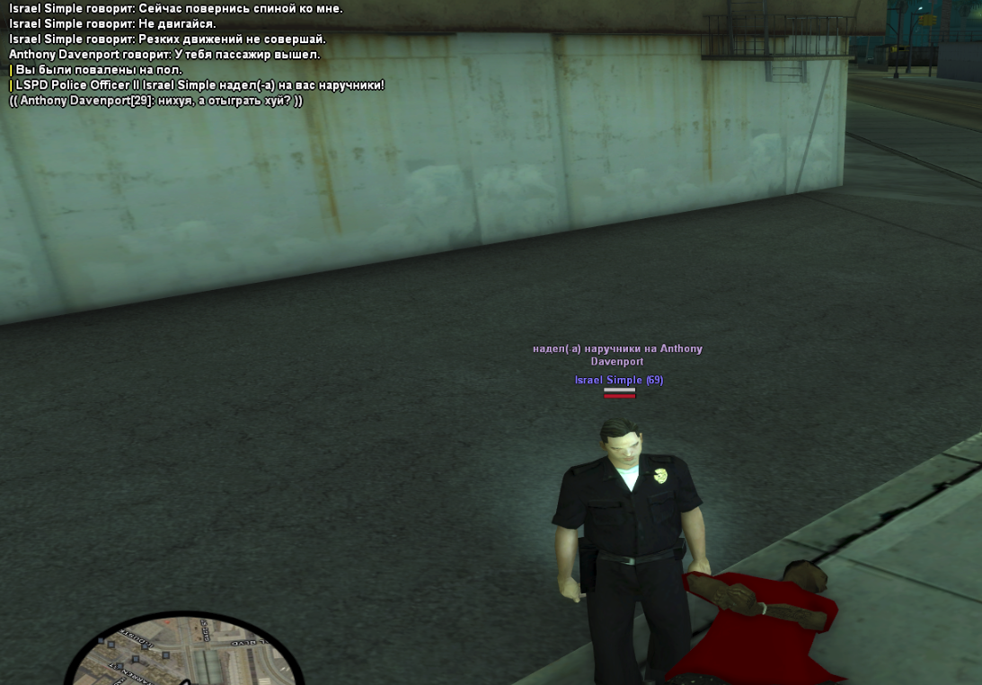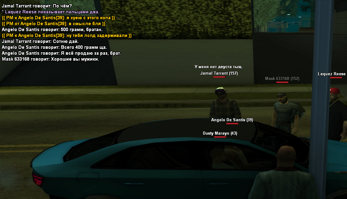 Задерживали двоих парней, Ангело Де Сантиса, который снабжает многих наркотой, в т.ч и меня, я подошёл, спросил, можно обратится к ним, в ответ получил Да, подошёл, прошептал, по итогу офицер говорит - ты задержан, спиной ко мне. Попытался убежать т.к много нелегального у меня, запрыгнул на мотоцикл, который стоял недалеко уже поехал, он подбегает, сбивает когда я уже в движении, после игра в одно действие.