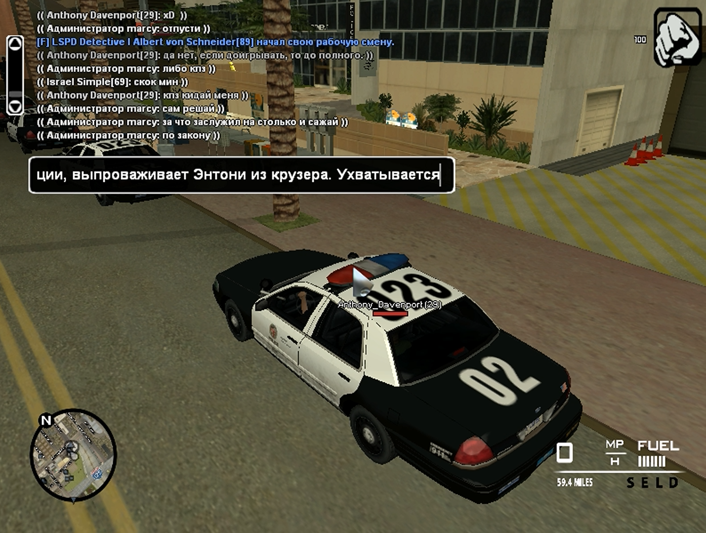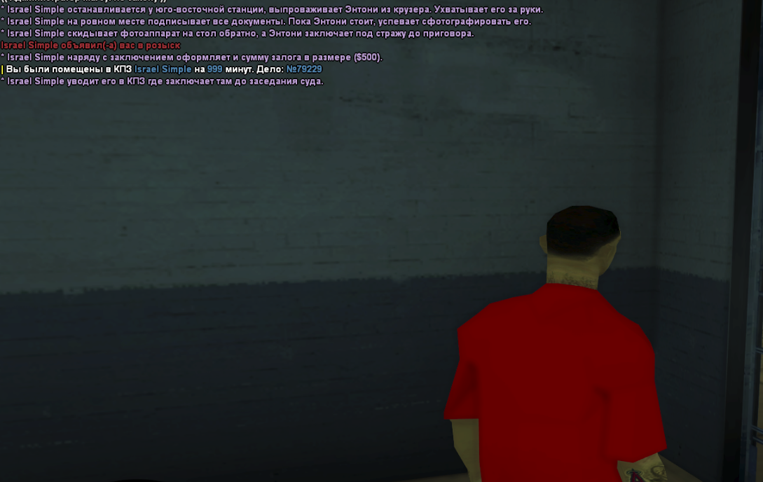 время было пол шестого, детективов нет, садка нет, написал марси - сказал сначала отпустить, но игрок захотел "до талого", посему я посадил его на 999 минут для игры с судом