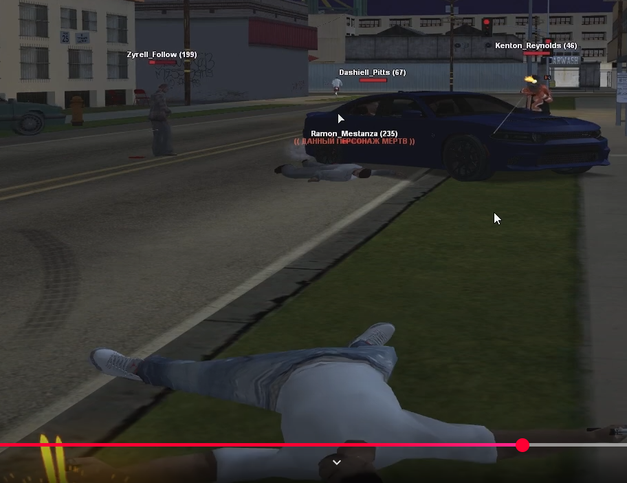 переходим к очередному моменту, где игроков обвиняют в использование сайлента. Сам момент. Не считаю, что на данном фрагменте является сайлент аим. Сам несколько раз мог в его лице пододвинуть машину, еще и заменка на автомобиль(рассинхрон и пинг - дело такое). Каждая заменка на автомобиль имеет особую коллизию(был сам в такой ситуации, писал ЖБ на копов - сработала аимка. Звук попадания идентичный, в общем, мое мнение - чита нет.
