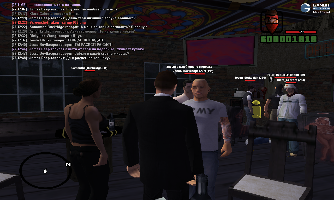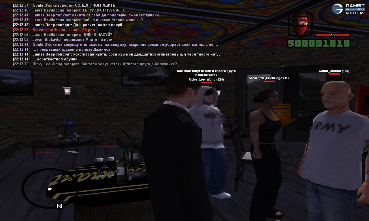 Я игрок гамбита, играющий этом сервере лишь со своими дорогими БРАТЬЯМИ в своё удовольствие, в основном получающий от это времяпрепровождения лишь приятные эмоции. Не люблю пальцем показывать, но увы и ах, гамбитюк - ЭТО ТЫ, ПАРЕНЬ! Думаю, если делать развернутое толкование этому слово, то живым примером этому термину можешь стать как раз таки ты. Создающий посредственные фракции, которые архиваешь спустя неделю ПАТАМУШТА ХЕД ОКРУГА НЕ ТОТ!!! Я ПРОТИФФ ВСЕХ!!!!, ополчил против себя целую кучу игроков, я ещё никогда не видел такого топика который моментально бы покрывался эмодзи какашек и клоунов, как любой твой. Бомбишь в ООС по любой ситуации, которая тебе не угодна, посыпая тонной оскорбленний и издевок игроков которые пытаются общаться в литературной форме с твой истероидной натурой. Не способен абсолютно выслушать мнение оппонента, вечно считающий себя правым. Дальше продолжать?