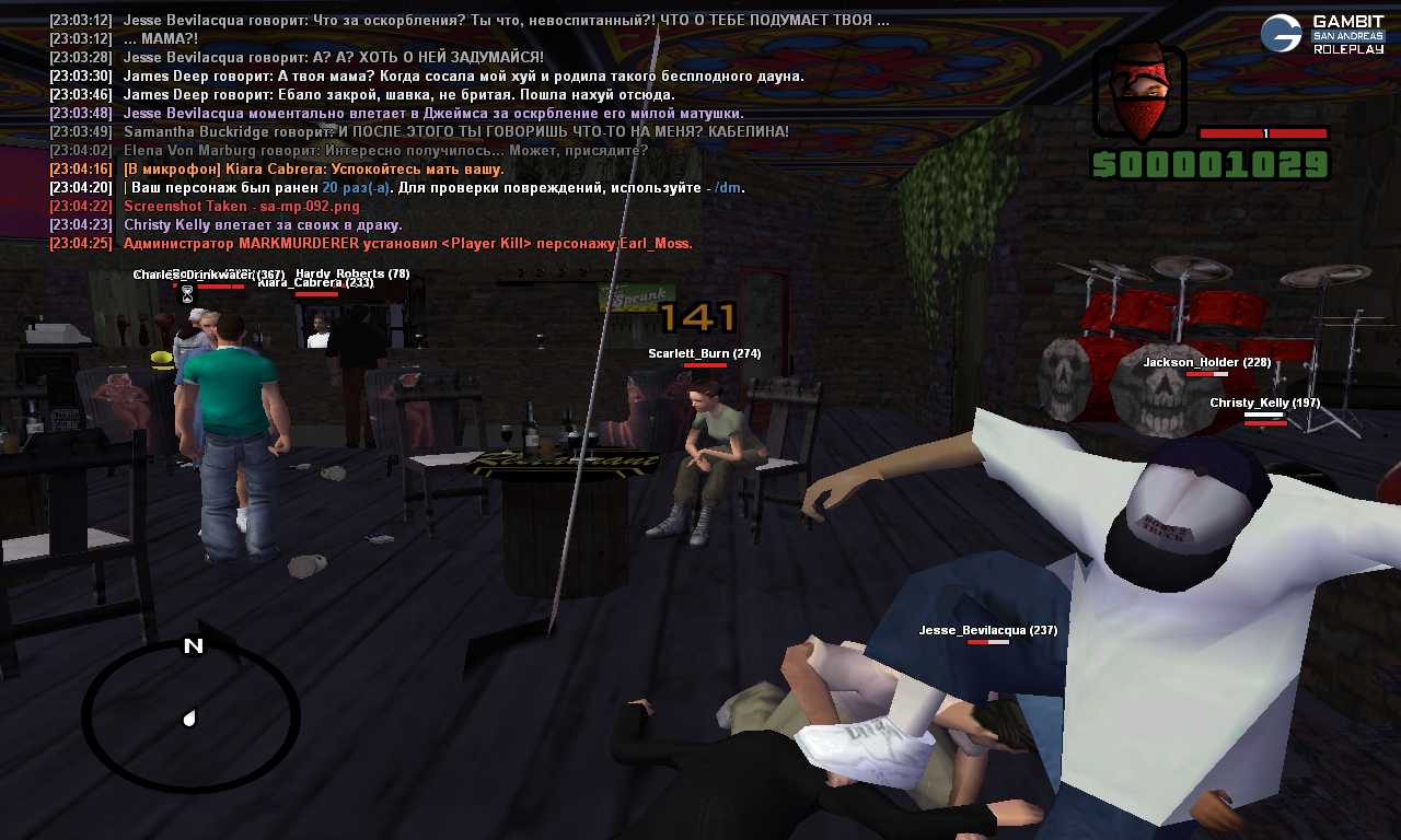 Насчет первого уже ответил выше, насчет второго)))) Против нас нет ни ОДНОГО человека в округе, что показало наше возвращение к тебе. За тебя вступился только один персонаж, который, кстати нашу драку один на один быстро перенес в масс зз на такой дивной площадке.
