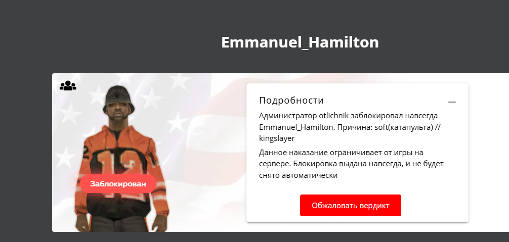 У администратора не оказался откат, поэтому разбаню, с пометкой в ЛК.