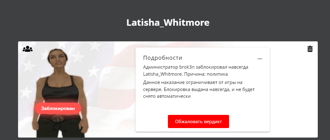 Суть жалобы: Прошу разбанить со сносом имущества. Если можно, оставьте дом, маппил его. Был окутан чувствами, не буду поднимать больше эти темы в игре.