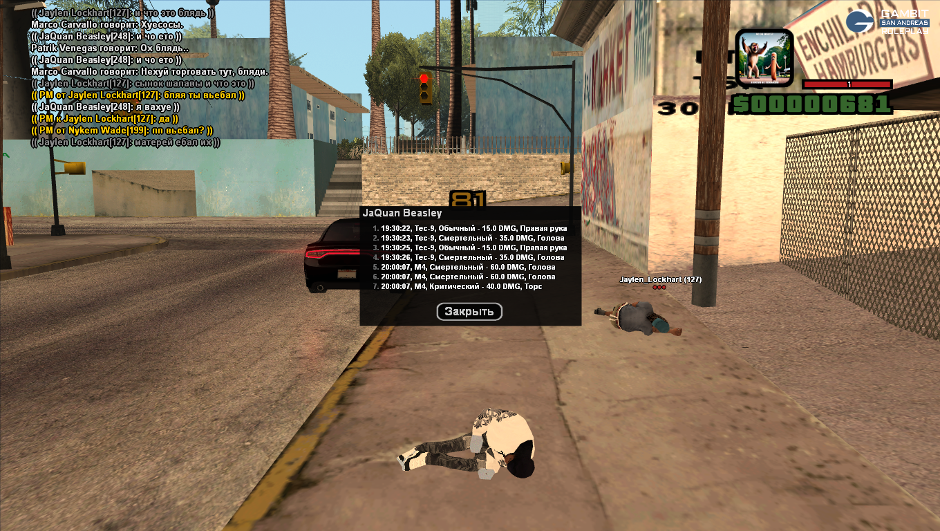 Кстати берём во внимание дамаг и замечаем, что полчаса назад эти игроки уже были в перестрелке, но забив на все ранения и дальнейшую игру последствий, продолжают гонять с оружием, толкать наркоту. Бля, я даже дальше писать ничего не хочу. Всё на лицо.