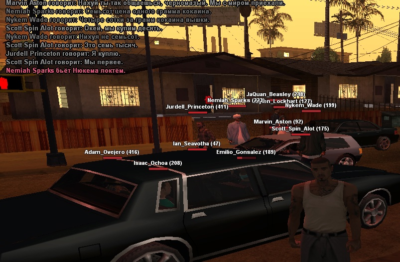 Суть жалобы: играли на худе и собирались уезжать, тут как тут налетает Marco_Carvallo и начинает угонять наш кар, я переспавнил его и мы начинаем гнаться за ним и бить под предлогом того что это фангеймер, начинаем бежать за ним до пигпена где тут как тут судя по всему появляется его друг (Patrik_Venegas) который просто на просто расстрелял нашу толпу с карабина, отыгровки не увидел. После того как нас убили индивид додумывается написать "НЕХУЙ ТОРГОВАТЬ", также имеются подозрения на аим со стороны патрика, т.к ведь дамаг прошелся в торс и в голову