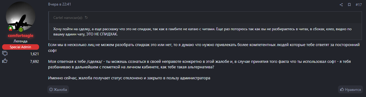 Полностью признаю вину, но это не спидхак, прощу желательно не делать пометку на ЛК, тк это помешает мне пройти на админку.