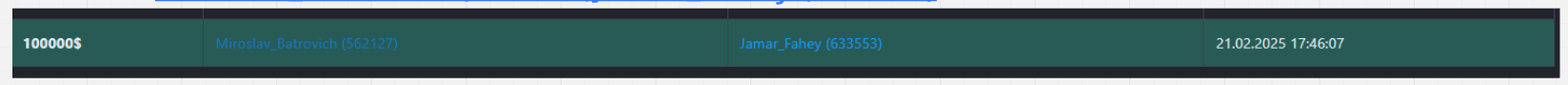 Суть жалобы: Приветствую, пишу эту жалобу, потому-что меня забанили за 24pp, играю в данный момент я за другого персонажа, и поэтому заходил на этого персонажа только для того, чтобы передать деньги за сделанную инту в баре Блуберри, так как на том персонаже у меня их не было (бар 3008), сумма была символичная, 110к, (100к цена вопроса, 10 на покупку мебели) За последние пол года переводов больше не было, все доказательства ниже.
