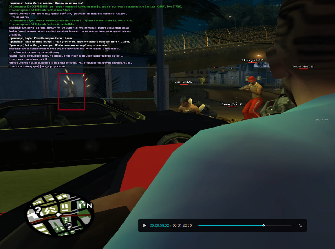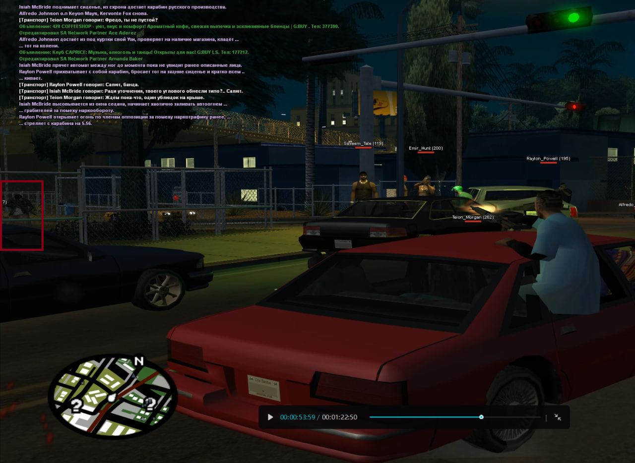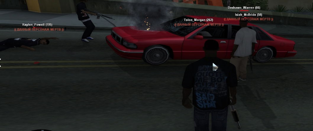 Сегодня, в ходе проезда по их худу мы наткнулись сразу на несколько нарушений со стороны игроков их фракции. После того как мы совершили несколько кругов вокруг их худа, ребята повылетали из интерьеров и позаходили в игру. Что за колл такой? Опять же, создаётся впечатление об ООС игре. Кто-то кого-то покнул и понеслось. Неготовность отыграть ни одну из возможных ситуаций НЕ в свою пользу характеризует игру Фронт Стрит, на мой взгляд, не с лучшей стороны.