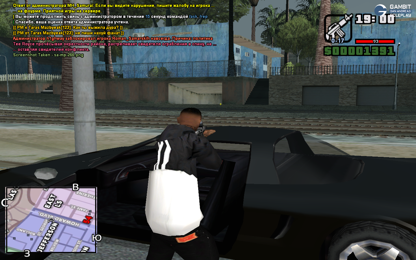 Суть жалобы: Приветствую на сите с ограблением в гетто, человек на карабин летит с руками. Это раз. После смерти и контрольного выстрела, который был отыгран + вызова копов он магическим образом через 10 минут бегает живой в гетто, не имея ни повреждений ни ранений. Релог на сите, оскорбления и вывод на эмоции. Тотальная безнаказанность и покрывательство со стороны администрации в виде хилла.