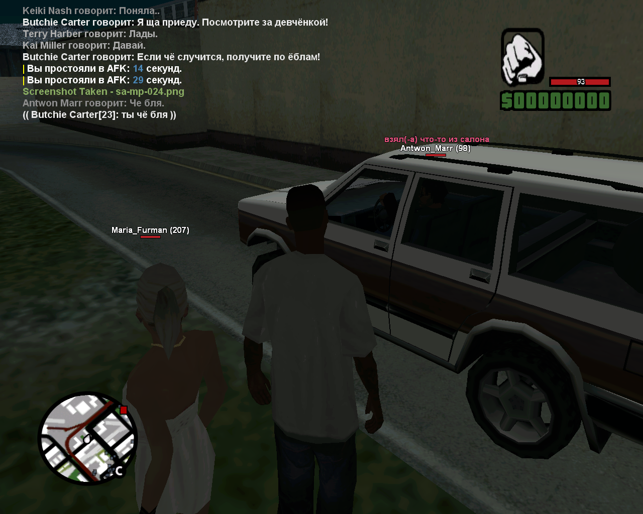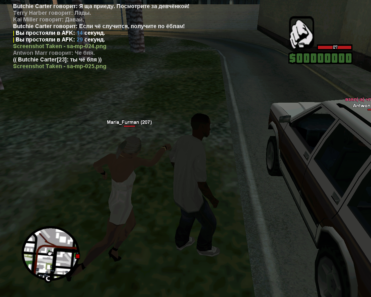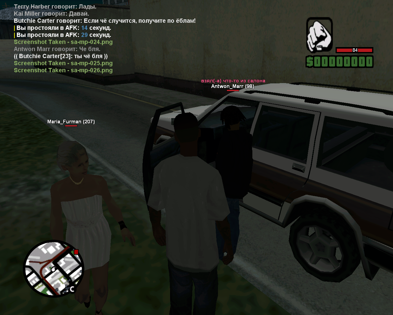 Суть жалобы: Сидел в тачке, подошёл Antwon_Marr, выкинул меня из машины и облутал бардачок. Забрал МП-5 и УЗИ.