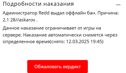 сниму варн, бан остается. пожалуйста впредь больше так не нарушай и посмотри ещё раз правила сервера, чтобы понимать в дальнейшем где ты мог накосячить.
