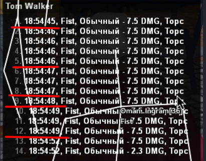 Только что проверили подобное с другим администратором, но даже использовав стиль боя и спринт - не могли получить подобный результат, потому что у нас всегда получалось максимум 2 удара в секунду. У тебя же, в секунду получается по 3-4 удара - что невозможно. Здесь явно прослеживается использование постороннего скрипта.